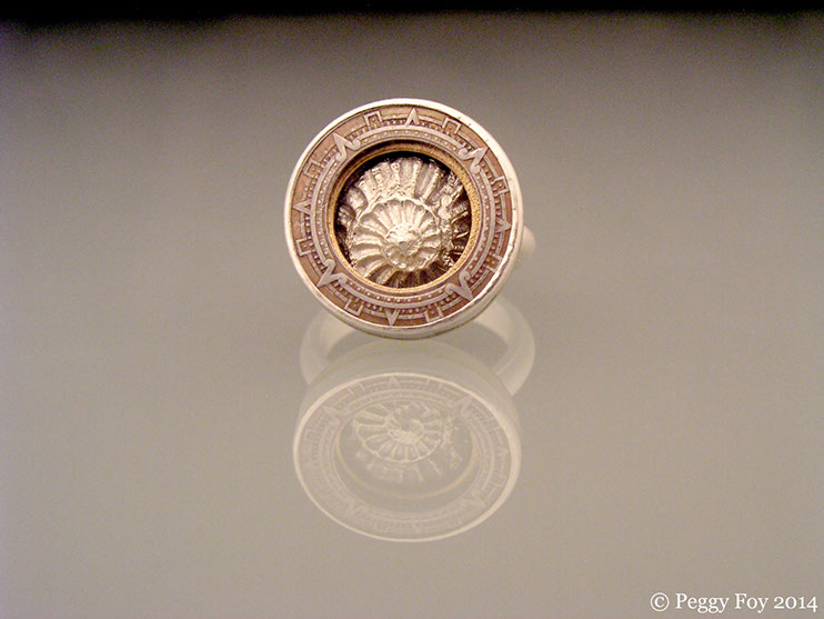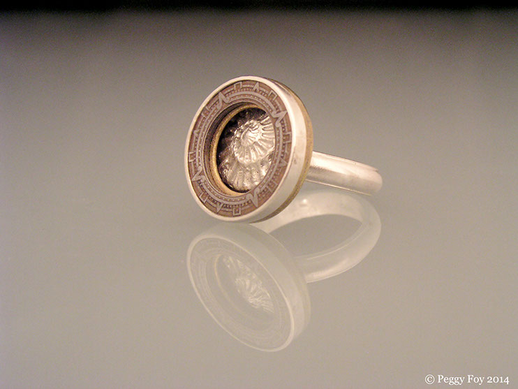 2007 - Mayan Compass Ring; Sterling, brass, steel coin fragment. Similar items available on Etsy.