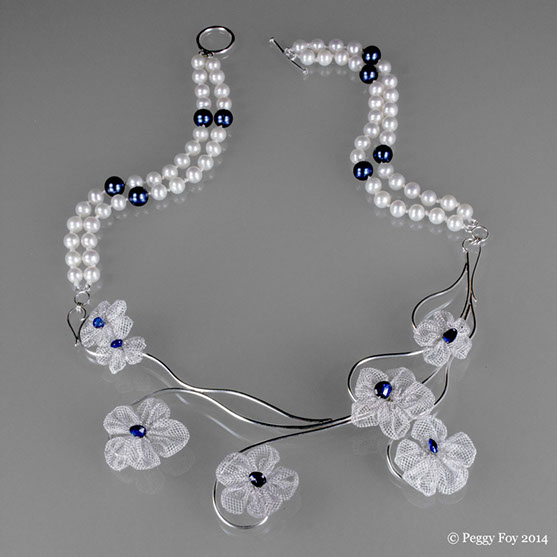 2013 - Martha's Wedding Necklace; sterling, fine silver, kyanite, pearls. Couture wedding creation.