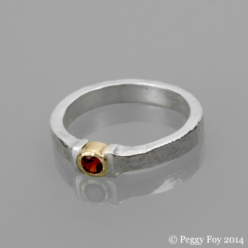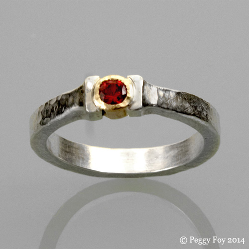 2013 - Rustic Ruby Ring; Sterling, 14k, Ruby. Currently available on Etsy.