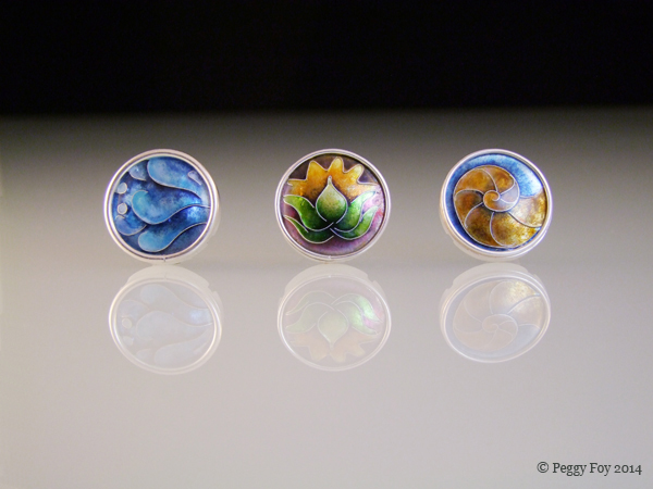2009 - Cloisonne Enamel Pins; sterling, fine silver, lead crystal enamel.